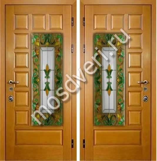 Элитная стальная дверь с отделкой массивом с витражами — совмещает стильный внешний вид и превосходные защитные характеристики.